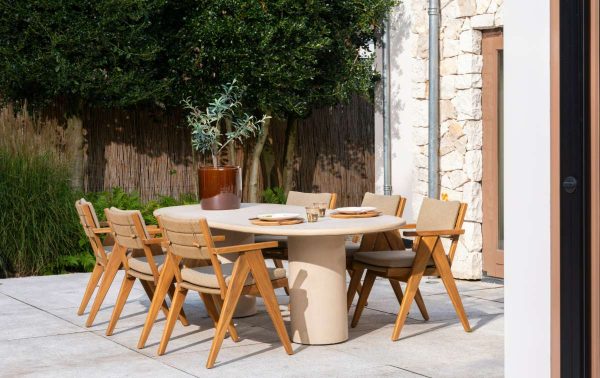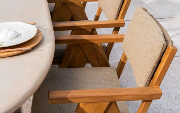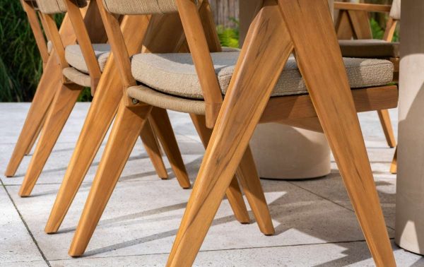 De 4 Seasons Outdoor Mats dining stoel  biedt een combinatie van comfort en stijl voor je buitenruimte. Het frame is gemaakt van het beste teakhout. De kussens in Olefin-stof zijn weerbestendig. De stoel heeft een natuurlijke uitstraling, versterkt door het gebruik van hoogwaardig teakhout voor extra stevigheid en elegantie.