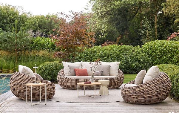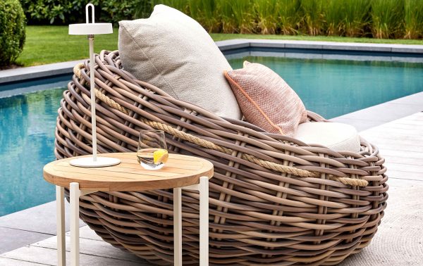 - De kuip en het frame zijn van wicker: licht genoeg om met één hand te verplaatsen en bestand tegen vocht en regen.