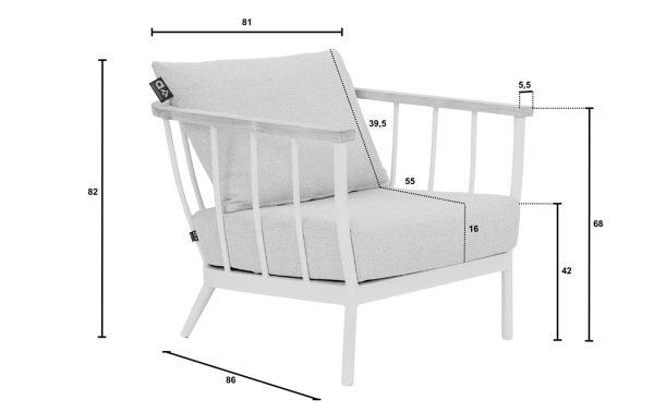 • Geniet van een natuurlijke uitstraling met teakhouten armleuningen.