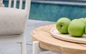 - 3 ronde tafels: ø54x50 cm, ø74x38 cm, ø94x44 cm (aluminium met teak blad)