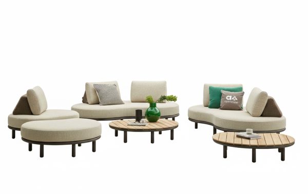 De Apple Bee Moon Island loungeset 6-delig is gemaakt voor wie ruimte heeft en er optimaal van wil genieten. Zes organisch gevormde elementen, samengesteld tot een uitnodigende zithoek die eruitziet alsof hij er altijd al hoorde. Het gepoedercoate aluminium frame in Bronze geeft een warme, aardse toon die mooi combineert met hout en natuursteen. De kussens zijn van all weather stof: weerbestendig, kleurvast en eenvoudig schoon te maken. De rugkussens zijn verwijderbaar en licht verzwaard zodat ze blijven zitten waar ze horen. Dankzij het modulaire systeem bepaal je zelf de opstelling, en uitbreiden kan altijd. Met 3 jaar garantie koop je met vertrouwen.