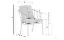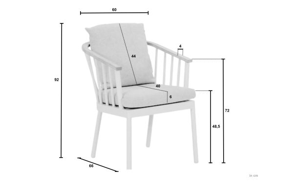 De Apple Bee Condor dining tuinstoel is gemaakt van kwaliteitsmateriaal. Het frame is uitgevoerd in gepoedercoat aluminium in de kleur Oyster en voelt licht aan. De armleuningen zijn van teakhout (‘Natural teak’). De kussens zijn van de technologie Bee WETT® in de kleur Cotton Flower (een zachte, lichte naturel tint) en hebben een zacht oppervlak. De stoel heeft een afmeting van circa 60 × 64 × 78 cm — een prima maat voor comfortabel zitten.