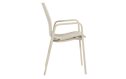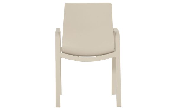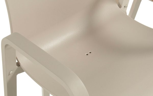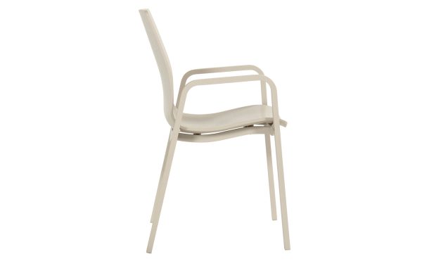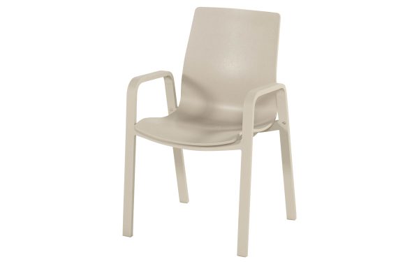 De Hartman Flow stapelbare tuinstoel in soft taupe is een stoel voor buiten die er rustig en verzorgd uitziet. De kleur soft taupe — een warme grijsbeige tint — geeft hem een subtiele uitstraling die met veel tuininrichtingen goed samengaat. Frame en armleuningen zijn beiden van aluminium in dezelfde kleur, wat hem een strak en eenheid geheel maakt.