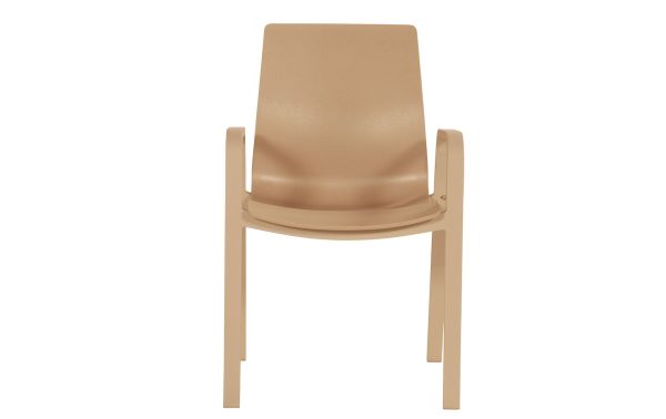 - Frame en armleuningen in dezelfde cappuccino kleur geven hem een strakke, uniforme look.