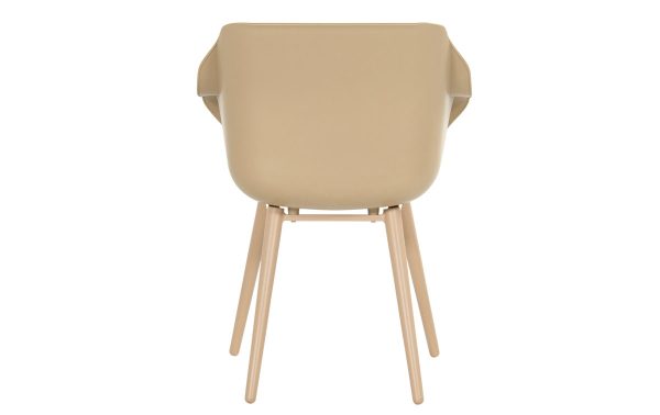 De Hartman Sophie Studio dining tuinstoel in cappuccino heeft iets warms over zich. Die bruine tint — ergens tussen taupe en mokka — zorgt ervoor dat de stoel goed combineert met teakhouten tafels, maar ook met een lichtgrijze of betonnen ondergrond. De kuip heeft een brede armlegger die uitnodigt om achterover te leunen, ook als je gewoon aan tafel zit.