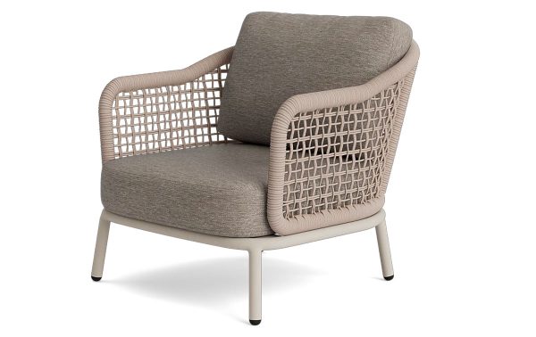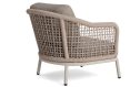 De Barcelona loungestoel buiten van Life Outdoor Living nodigt je uit om te ontspannen. Met deze loungestoel buiten in beige haal je een rustige, elegante uitstraling naar je tuin. De zit is diep en ondersteunend. Je zakt er net genoeg in om te ontspannen, maar je zit nog steeds rechtop genoeg om een boek te lezen of een goed gesprek te voeren. Het subtiele vlechtwerk in RuCore touw geeft de stoel een verfijnd reliëf. In het licht zie je de afwisseling van enkele en dubbele draden, wat de stoel net dat beetje extra karakter geeft.