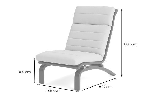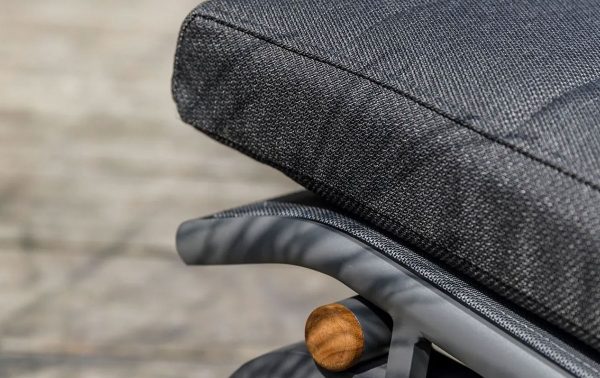 Het meegeleverde Bondi kussen heeft een zit- en rugdeel in één, met een hogere rug voor extra nek- en hoofdsteun. De bekleding is Soltex: zacht, snel drogend en geschikt voor de hele zomer buiten. De kleurcombinatie Lava met Soltex Dune kussen heeft een zandkleurige, natuurlijke uitstraling die goed combineert met een moderne of mediterrane buitenruimte.