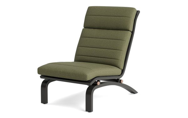 De Felix relaxstoel van Life Outdoor Living trekt de aandacht met zijn warme, olijfgroene kussen tegen het donkere Lava frame. Het is een combinatie die je buiten niet vaak ziet — en die juist daarom zo goed werkt. De textileen zitting veert licht mee zodra je gaat zitten. Dat geeft een ontspannen gevoel, zonder dat je wegzakt. De schuinte van de rugleuning zit precies goed: je zit rechtop genoeg om een gesprek te voeren, maar leunt ook makkelijk achterover met een boek. De afgeronde poten en zachte lijnen geven deze relaxstoel een rustige uitstraling op elk terras.