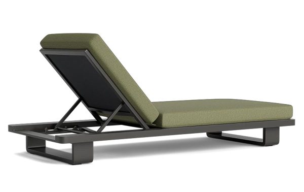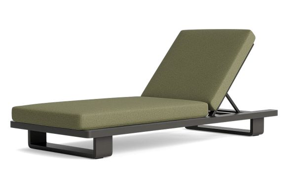 Het Life Outdoor Living Fitz Roy ligbed heeft een stoer aluminium frame in lava. De textileen zitting voelt stevig aan en geeft precies genoeg mee. Het olijfgroene kussen is dikker dan gebruikelijk en nodigt uit om te gaan liggen. De pootconstructie is anders dan je gewend bent, geen vier losse poten maar een doorlopend ontwerp. De donkere lavakleur geeft het ligbed een robuuste uitstraling.