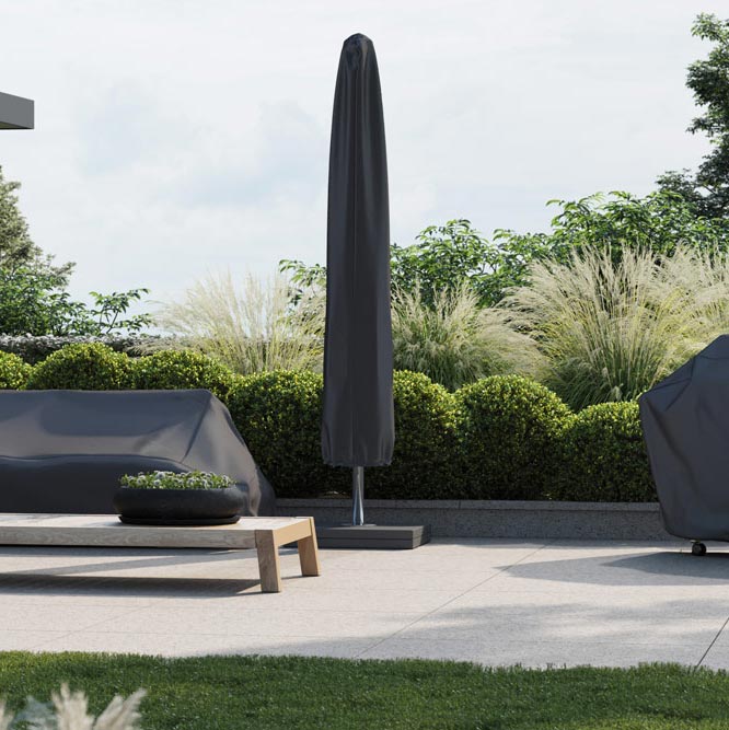 Vergeet niet om een passende parasolvoet en parasolhoes te bestellen voor je nieuwe parasol.