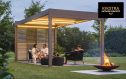 Om van je terrasoverkapping een gezellige ruimte te maken, zijn er tal van zij-elementen en opties beschikbaar. Kies voor sfeervolle buitengordijnen of ga voor een zon- en windwerend screendoek met venster om maximaal van het uitzicht op je tuin te genieten. Daarnaast kan je ook een muziek- of verwarmingsinstallatie integreren en van je Renson Algarve jouw favoriete ontspanningsplek maken!