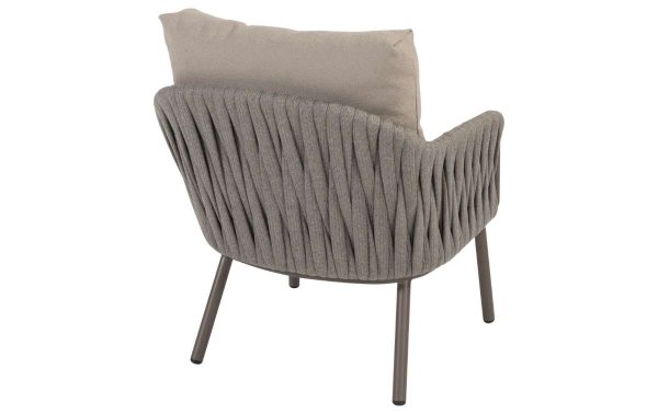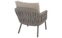 De Taste by 4SO Cannes low dining stoel in Terre combineert het comfort van een loungestoel met de functie van een eetstoel. Het aluminium frame heeft een matte afwerking in een aardse tint. Het handgevlochten rope geeft de stoel karakter en structuur. De lage zithoogte maakt lang tafelen extra ontspannen. Je krijgt twee olefin kussens bij de stoel: één voor de zitting en één voor de rug. Het rope voelt stevig aan en geeft net genoeg mee als je gaat zitten.