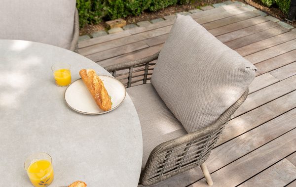 Deze eettafel geeft je tuin een verfijnde uitstraling.