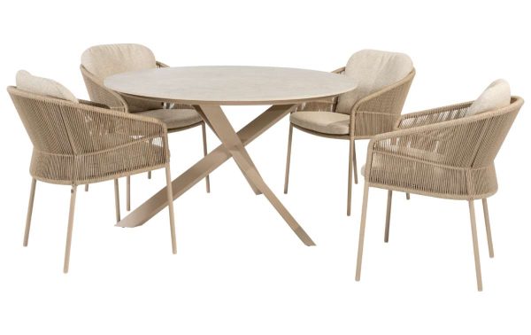Taste by 4SO Florence diningset met Prado 130 cm tafel 5-delig | Latte