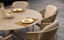 De Florence diningset met Prado keramiek tafel combineert stijl met comfort. Vier stoelen in de kleur Latte staan rond een ronde tafel van 130 cm. Het strak geweven rope vlechtwerk heeft een luchtige uitstraling. Het keramische tafelblad geeft de set een moderne look.