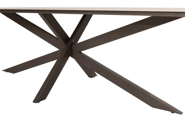 Met een blad van 300 cm zit iedereen er ruim aan, ook als je met een grotere groep bent. Het keramisch blad ziet eruit als natuursteen, maar is een stuk praktischer. Je zet er warme schalen op neer, regen maakt hem niks uit en een kras krijg je er nauwelijks in. Na het eten veeg je hem schoon met een vochtig doek. Meer onderhoud heeft deze tuintafel niet nodig.