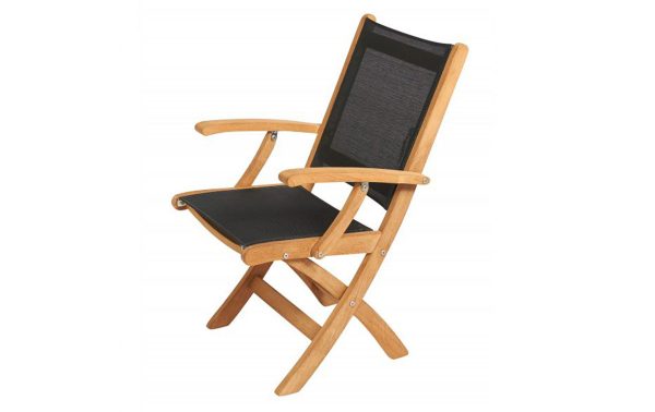 Deze stijlvolle klapstoel voorzien van een textileen zitting en armleuningen is ideaal voor op het terras of in uw tuin. Doordat de stoel inklapbaar is, kun je hem makkelijk opbergen en is hij ruimtebesparend. Voordeel van textileen is dat het niet verkleurt en na een regenbui droogt de zitting snel op.