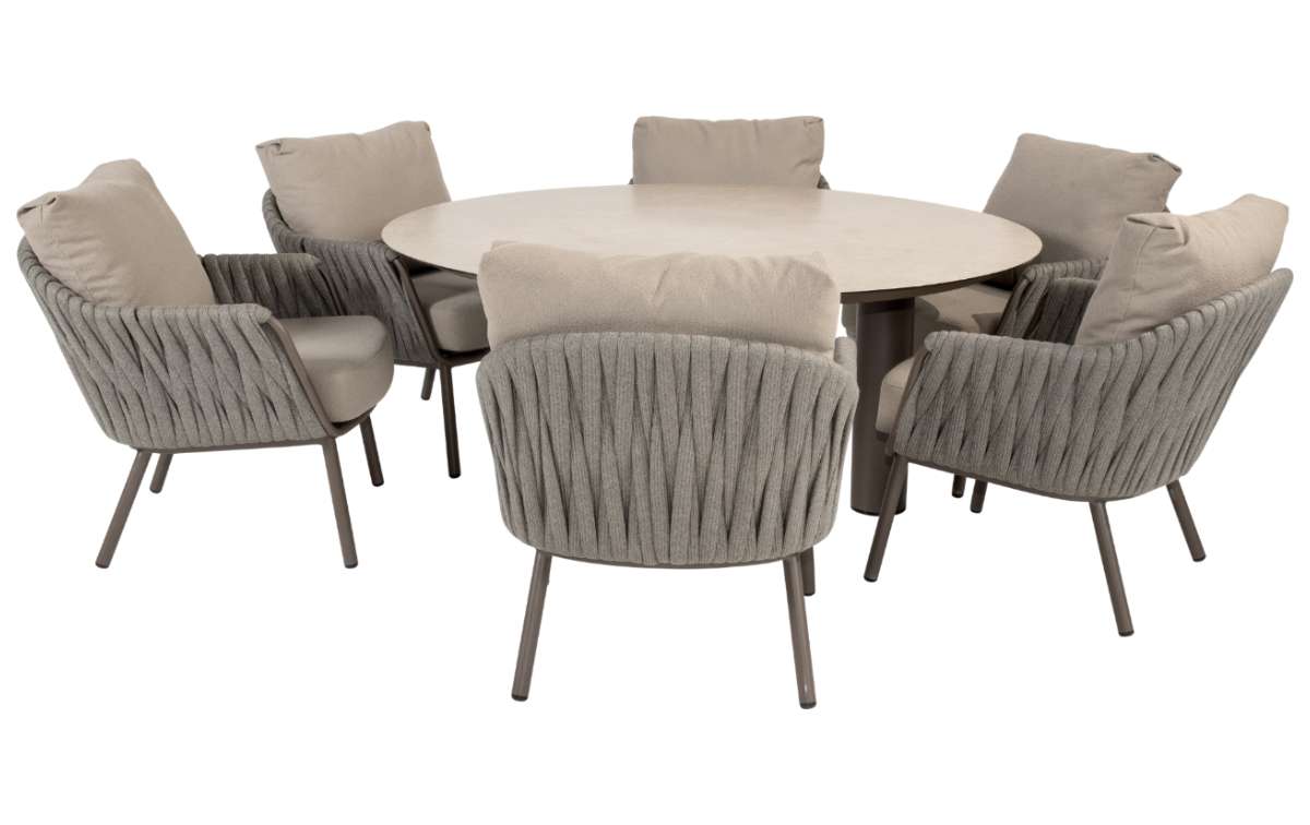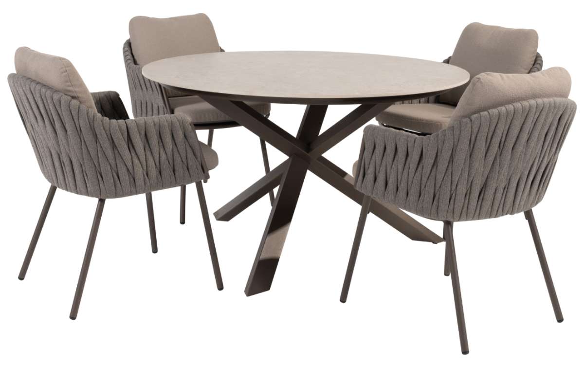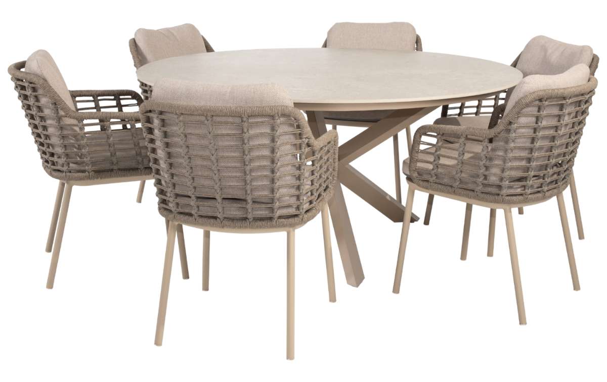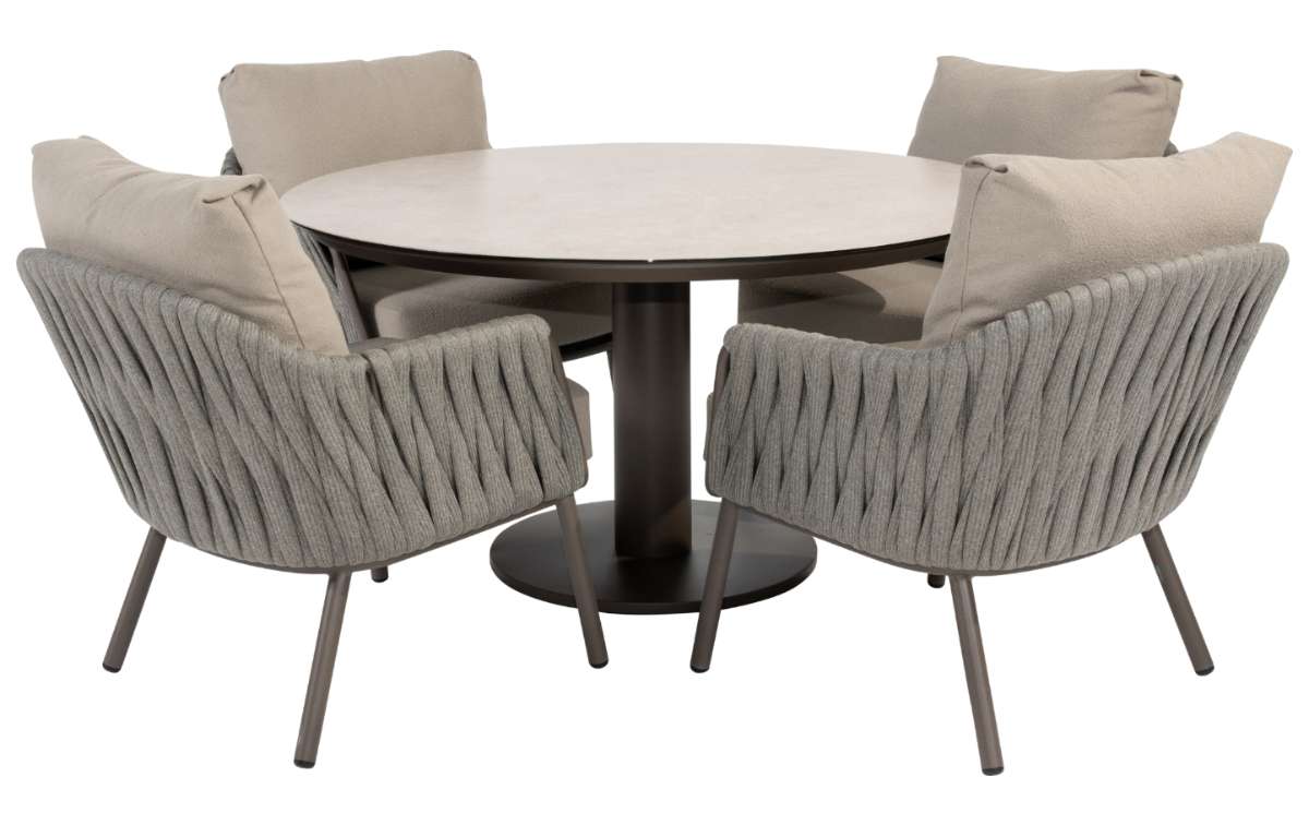 4 Seasons Outdoor Allora dining stoel met Prado 130 cm tafel | Latte