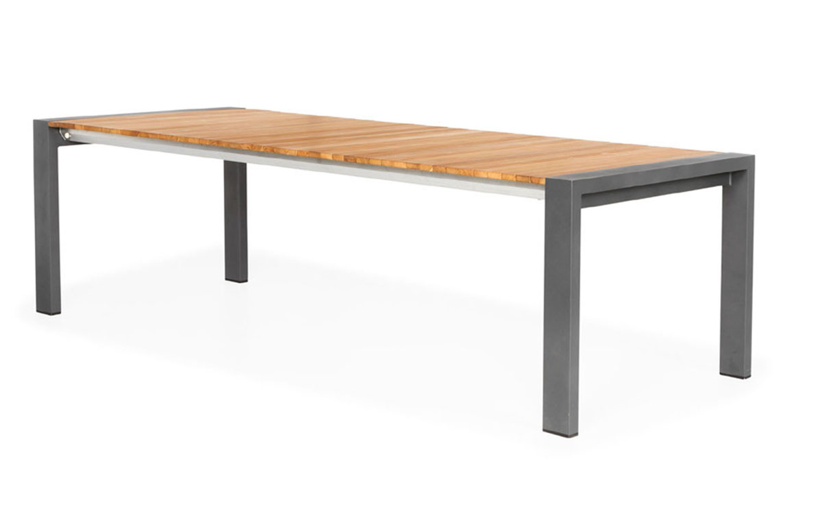 Teakhout is en geliefd materiaal voor tuinmeubelen. Omdat het vervaardigd wordt uit een boom, is de reden dat teak graag in de tuin gezien wordt. Aangezien elke boom groeit onder verschillende omstandigheden, zal er altijd wat kleurverschil te zien zijn tussen de verschillende planken. Sommige teakplanken bevatten noesten, en de werking van het hout kan verschillen. In teakhout kunnen haarscheurtjes ontstaan en het hout verkleurt naar lichtgrijs, indien het niet behandeld word. Wens je wel een tuintafel van teakhout, maar wil je niet dat de tafel vergrijst, dan dient de tafel onderhouden te worden. Ook het schoonmaken van teak vereist meer werk dan de eerder genoemde materialen. Groene aanslag verwijder je het beste met een halfzachte borstel en een sopje van lauwwarm water met groene zeep en soda.